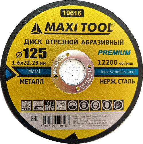Диск отрезной 125-1.6-22.23мм 19616 по металлу прем.(50шт/400шт) MaxiTool