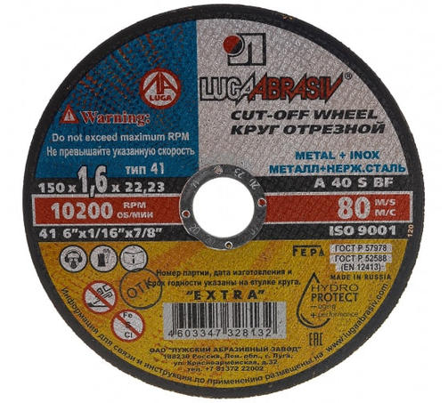 Круг отрезной по металлу, 150 х 1,6 х 22 мм (Луга)// Россия 73658