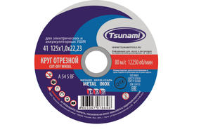 Круг отрезной по металлу+нерж., 125 х 1,0 х 22 мм, ПРЕМИУМ (Луга)// Россия 73712