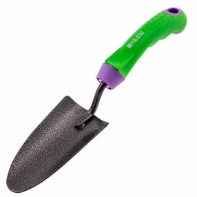 Узкий посадочный совок Palisad ERA 62647 размером 65 х 300 мм, стальной, с обрезиненной эргономичной рукояткой, позволяет осуществлять бережную пересадку рассады и растений с корнями. За счет узкого изогнутого полотна шириной 65 мм и общей длины 300 мм инструмент оптимально подходит для работы на небольших клумбах и грядках, а также в теплицах. Преимущества Рабочая часть выполнена из среднеуглеродистой стали, что гарантирует ее надежность и долговечность. Порошковое покрытие предотвращает образование коррозии на стальной рабочей части. Совок легко проникает в грунт, т.к. имеет заостренный наконечник. При погружении совка в землю можно контролировать глубину посадки благодаря мерной шкале. Рукоятка имеет эргономичную форму и резиновое покрытие, что повышает комфорт работы. Инструмент можно подвесить на крючок или гвоздь, т.к. в рукоятке предусмотрено отверстие. Небольшой вес приспособления 215 г обеспечивает работу без усталости. 450,00 ₽ / шт