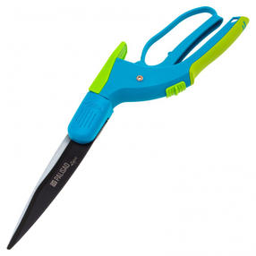 Газонные ножницы Palisad LUXE 60863 длиной 350 мм, с пластиковыми обрезиненными рукоятками, — инструмент для подстригания травы вдоль кромок газонов, дорожек, вдоль бордюров, ограждений, возле кустов. Поворотные на 180 градусов лезвия облегчают работу в труднодоступных местах. Гарда на нижней рукоятке защищает пальцы от царапин, проколов и ссадин. Механизм автооткрывания препятствует заеданию лезвий при стрижке жесткой травы. Ножницы помогут привести в порядок дачный участок или придомовую территорию. Преимущества Корпус изготовлен из прочного полипропилена, устойчивого к УФ-излучению, что увеличивает срок службы инструмента. Лезвия отличаются высокой прочностью и износостойкостью, т.к. изготовлены из высококачественной японской стали SK-5, легированной кремнием и кобальтом. Режущие кромки закалены до твердости 53-58 HRC и остро заточены, что обеспечивает износостойкость ножниц. Верхнее лезвие имеет тефлоновое покрытие, предотвращающее образование коррозии и облегчающее рез. Нижнее лезвие хромировано для защиты от ржавчины. У ножниц имеется фиксатор лезвий, удерживающий их в сомкнутом положении для обеспечения безопасности хранения и транспортировки. Регулировочный винт позволяет настроить плотность смыкания лезвий для повышения качества реза. Специальный колпачок защищает шарнир от попадания в механизм пыли и частиц срезанной травы. Рукоятки покрыты нескользящей термопластичной резиной, что обеспечивает надежный хват и повышает комфорт во время работы. 700,00 ₽ / шт