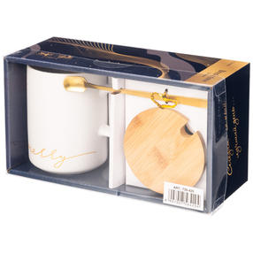 КРУЖКА БЕЛАЯ 380 МЛ С КРЫШКОЙ И ЛОЖКОЙ В ПОДАРОЧНОЙ УПАКОВКЕ (КОР=18ШТ) 756-420 Lefard