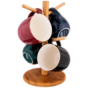 НАБОР ИЗ 4 КРУЖЕК НА ДЕРЕВЯННОЙ ПОДСТАВКЕ LEFARD "BREAK TIME" 310 МЛ МИКС (КОР=4НАБ.) 756-244 Lefard