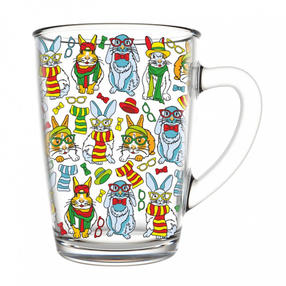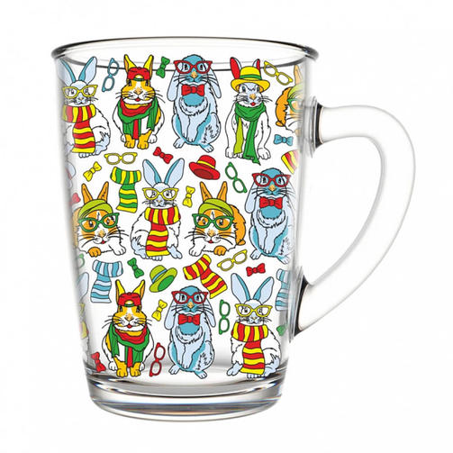 Кружка для чая 300 мл Зайцы хипстеры круговая деколь 334-Д