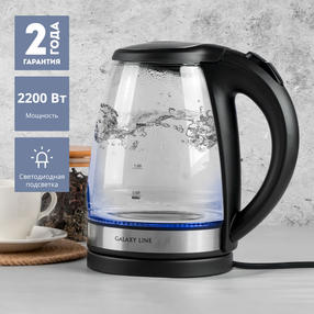 Galaxy LINE GL 0560 ЧЕРНЫЙ Чайник электрический 2200Вт, объем 1,7 л, скрытый нагревательный эл