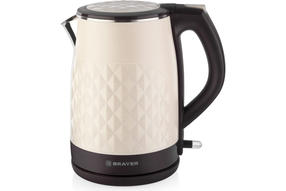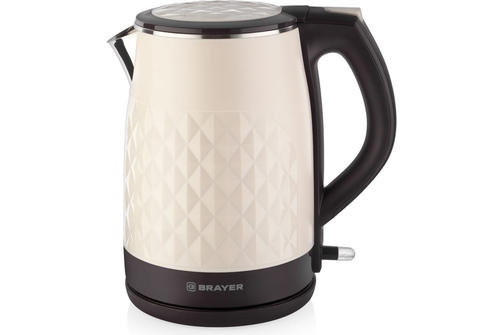 Электрический чайник Brayer BR1043WH - модель в прочном корпусе нежного бежевого цвета с оригинальными выпуклыми декоративными узорами, которая идеально подходит для использования дома и в офисе. Электроприбор обладает двойными стенками из нержавеющей стали и пластика. Скрытый нагревательный прибор обеспечивает быстрое кипячение и безопасность эксплуатации. Резервуар емкостью на 1,5 л оптимален для небольшой семьи, состоящей из нескольких человек. Специальная отметка показывает максимальный уровень воды. Модель оборудована откидной крышкой с защелкой и возможностью свободного вращения на 360° на подставке. В носик встроен специальный фильтр, защищающий от попадания в готовый напиток накипи. Максимально комфортной эксплуатации способствует наличие системы автоотключения во время закипания. Предусмотрено наличие блокировки включения в случае отсутствия воды в резервуаре. Благодаря небольшому весу Brayer BR1043WH удобно перемещать из одного места в другое. 2 300,00 ₽ / шт