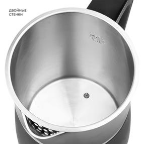 Чайник электрический GALAXY LINE GL0338 имеет лаконичный современный дизайн и впишется в интерьер любой кухни. Отличительной особенностью данной модели является функция ручной установки температуры. Удобный переключатель режимов позволяет выбрать необходимую для заварки того или иного вида чая температуру от 40 до 100 °С. Оптимальный объем чайника в 1,7 л позволяет вскипятить воду для семьи из 4-х человек. Чайник имеет двойные стенки из нержавеющей стали марки 18/10 и пищевого пластика. Теплоизолирующий зазор (воздушная подушка) создает эффект термоса, сохраняя воду горячей долгое время. Внутренняя металлическая часть корпуса изготовлена из особой нержавеющей стали марки 18/10, которая устойчива к коррозии и воздействию солей при нагревании, а также препятствует размножению микробов. Съемная крышка, а также большое горлышко чайника позволяют быстро наполнить чайник водой, а также облегчают доступ внутрь при его мойке. Функция автоотключения при закипании и отсутствия воды делает безопасным в использовании для детей и пожилых людей. Стильный дизайн чайника отлично подойдет для любого стиля и дизайнерского решения. Параметры питания, В/Гц: 220-240/50 Мощность, Вт: 2200 Объем, л: 1,7 Тип нагревательного элемента: Скрытый Количество стенок: 2 Автоотключение при закипании: Да Автоотключение при отсутствии воды: Да Указатель максимального уровня воды: Да Место для хранения шнура питания: Да Длина шнура питания, м: 0,72 LED-дисплей: Да Гарантийный срок: 2 года 2 500,00 ₽ / шт