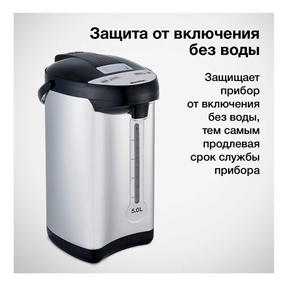 Вскипятить воду и устроить семейное чаепитие отныне не составит никакого труда, ведь полученного кипятка хватит на всех. Термопот Bt TP536 Black-Steel - это универсальный прибор для нагрева воды до нужной температуры и удержания ее на протяжении длительного времени. Благодаря своей функциональности и безопасности термопот удобен для больших семей, пожилых граждан, а также молодых родителей, которым постоянно требуется кипяченая вода нужной температуры. Термопот Bt TP536 Black-Steel имеет достаточно высокую мощность 750 Вт и может быстро нагреть воду до нужной температуры. Так же имеет оптимальный большой объем 5 литров. Дополнительным преимуществом термопота Bt TP536 Black-Steel является 2 способа подачи воды: нажатием чашкой на клавишу или нажатием кнопки на панели управления. Колба из нержавеющей стали обеспечивает долгое сохранение высокой температуры воды и не изменит ее вкус. 4 976,00 ₽ / шт