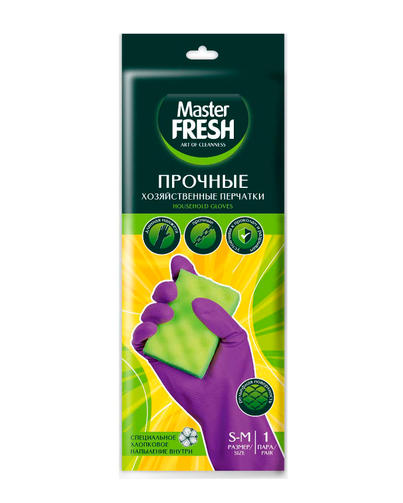 Хозяйственные перчатки Master FRESH обеспечивают максимальный комфорт во время работы - их легко снимать и надевать. Изготовлены из прочного латекса с рифленой поверхностью, которая позволяет удерживать мокрые предметы, а хлопковое напыление препятствует прилипанию перчаток к коже рук. Длинная манжета предотвращает попадание воды внутрь перчатки. Перчатки эффективно защищают руки от загрязнений, воздействия моющих и чистящих средств. Подходят для различных видов домашних работ (мытье посуды, уборка дома, садоводство, стирка белья, мытье окон, ремонтные работы, мытье машины, работа в пыльных помещениях). 48,82 ₽ / шт