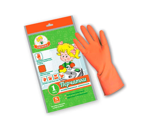 Перчатки хозяйственные латексные "Умничка" S (12/240) 40г