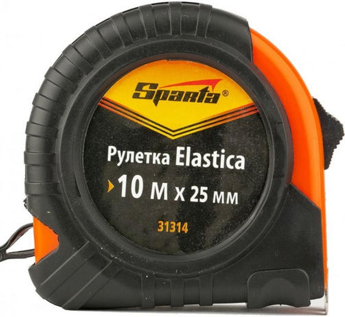 Рулетка Elastica, 10 м х 25 мм, обрезиненный корпус Sparta 31314