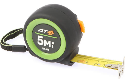 Компактная рулетка Дело Техники 101405 в обрезиненном, эргономичном корпусе с автоматическим фиксатором ленты. Двусторонняя двуцветная измерительная лента, с нейлоновым покрытием стойким к истиранию. Подвижный зацеп для точного измерения внутренних и внешних размеров: При измерении от предмета зацеп является нулевой меткой При измерении с захватом предмета зацеп сдвигается, этим компенсируется толщина зацепа, и край измеряемого предмета совпадает с нулевой меткой. 734,00 ₽ / шт