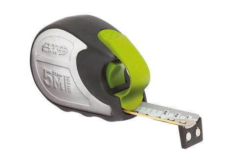 Рулетка в обрезиненном корпусе и накладками из нержавеющей стали, с автоматическим фиксатором ленты. Двусторонняя двуцветная измерительная лента с вертикальной и горизонтальной разметкой, с нейлоновым покрытием. Нейлоновое покрытие защищает ленту от истирания, увеличивает её износостойкость, а также обеспечивает дополнительную жесткость при выдвижении ленты на предельные значения, что в совокупности с шириной ленты 25мм позволяет использовать рулетку для измерения больших длин без сторонней помощи. Длина ленты: 5 м Ширина ленты: 25 мм Габариты (Д×Ш×В):100×45×70 мм Масса: 310г Подвижный зацеп для точного измерения внутренних и внешних размеров: 1. При измерении от предмета зацеп является нулевой меткой 2. При измерении с захватом предмета зацеп сдвигается, этим компенсируется толщина зацепа, и край измеряемого предмета совпадает с нулевой меткой. 1 099,00 ₽ / шт