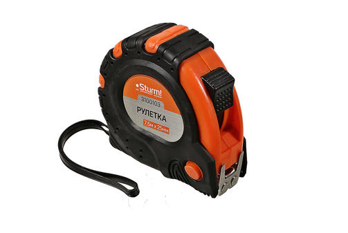 3100103 Рулетка 7,5м x 25мм с 2-х сторон.шкалой,усил.магнит,обрезинен.корпус, 2-ой зацеп,Sturm!