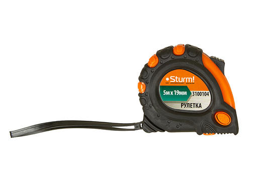 3100104 Рулетка 5м Х 19мм с 2-х сторон.шкалой,усил.магнит,обрезиненный корпус,2-ой зацеп,Sturm!