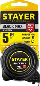STAYER BlackMax, 5м х 19мм, рулетка с двумя фиксаторами, Professional 3410-05_z02