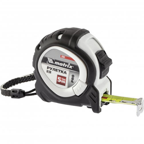 Рулетка Neon,5 м x 19 мм,обрезиненный корпус,3 фиксации,Pro Matrix 32591