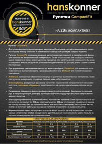 Малогабаритная модель, благодаря которой разметочные работы выполняются быстро и точно. Уменьшенный на 30% компактный обрезиненный корпус с удобными контрольными кнопками, плавно выдвигающаяся лента с антибликовым слоем предоставляют потребителю наилучший комфорт при проведении измерительных операций. Благодаря использованию ленты из стойкой к изломам рессорной стали, горизонтальный вынос рулетки составляет 210 см, а вертикальный- 280 см, что помогает легко и быстро выполнить замер одному человеку без посторонней помощи или уверенно производить измерения в недоступных местах, стесненных условиях и над головой. Доступное высокоточное измерение расстояний благодаря соответствию мерного полотна второму классу точности и обязательной заводской проверке каждого изделия. Для повышения износостойкости шкала покрыта зашитым полимерным антикоррозийным слоем, благодаря чему она не сотрется даже при долгом использовании. Мерное полотно имеет непрерывно оцифрованную шкалу с четкой индикацией, которая хорошо читается при слабой освещенности. Наконечник ленты усилен двойным металлическим желобом для предотвращения обламывания. Универсальность использования ленты обеспечивают две опорные точки для измерения: передняя и задняя сторона упорной пластины-зацепа, которые позволяют начать замер от верхних или нижних кромок до проемов и торцов. Для наилучшего комфорта зацеп имеет миниатюрный двойной магнит, с силой прижатия способной выдержать 800г, благодаря которому обеспечивается его надежная фиксация к металлосодержащим поверхностям, что помогает выполнить замеры в одиночку, либо соединить вместе две рулетки для измерения увеличенной до 16 метров длинны с одной стоянки без перехода. Для удобства использования механизм фиксации с износостойким полимерным стопорным валиком и кнопкой «пауза» легко управляется одним нажатием пальца, а лента прочно удерживается верхним сдвижным замком для фиксации результатов измерения или выставления эталона. Возвратный механизм выполнен из усиленной износостойкой легированной стали и характеризуется на порядок увеличенным рабочим ресурсом. Размещение сдвижного фиксатора вверху корпуса обеспечивает безопасность пальцев рук, а амортизирующий демпфер поглощает случайный удар при быстром свертывании мерного полотна. Корпус из ударопрочного пластика с металлическим зацепом покрыт противоскользящим резиновым покрытием для того, чтобы инструмент не выскальзывал из рук при работе во влажных условиях. Благодаря компактному исполнению этого высокоточного помощника легко держать всегда под рукой. 1 190,00 ₽ / шт