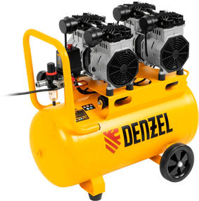 Компрессор безмасляный, малошумный DLS 2200/50, 2200 Вт, 2x1100, 50 л, 380 л/мин Denzel 58031