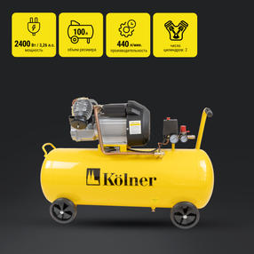 Kolner KAC 100/2400-2 Компрессор масляный коаксиальный двухцилиндровый 2400 Вт/ 3,26л.с., объе