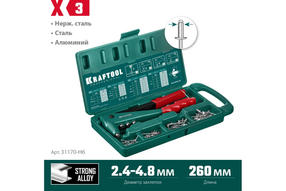 KRAFTOOL X-3, 2.4 - 4.8 мм, литой заклепочник в кейсе (31170-H6)