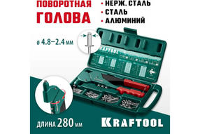 KRAFTOOL RX-7, 360°, 2.4 - 4.8 мм, литой поворотный заклепочник в кейсе (31176-H6)
