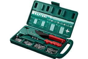 Литой поворотный заклепочник KRAFTOOL RX-7 360° в кейсе, 2.4 - 4.8 мм 31176-H6_z01 выдерживает высокие рабочие нагрузки и предназначен для установки заклепок из алюминия, стали и нержавеющей стали различных диаметров. Применяется для установки вытяжных заклепок. Используется с алюминиевыми заклепками диаметром 2,4, 3,2, 4,0, 4,8 мм, стальными и нержавеющими заклепками диаметром 2,4, 3,2, 4,0 мм. Преимущества заклепочника KRAFTOOL 31176-H6_z01 Поворотная головка (на 360 градусов) облегчает работу в труднодоступных местах Повышенная прочность благодаря кованым рукояткам Рабочие губки изготовлены из хромистой стали SCM440, закалены и устойчивы к циклическим нагрузкам Корпус изготовлен из специального сплава методом литья под давлением Кейс обеспечивает удобство хранения 5 275,60 ₽ / шт