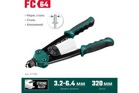KRAFTOOL FC-64, 3.2 - 6.4 мм, 320 мм, регулировка усилия, компактный двуручный заклепочник (31160)