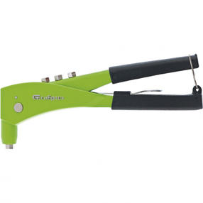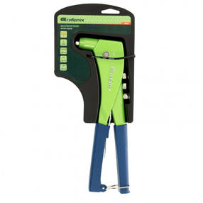 Заклепочник Сибртех 40545 длиной 250 мм с литым корпусом, пригодится для крепления листового металла вытяжными заклепками диаметром 2,4-3,2-4,0-4,8 мм. Он гарантирует долговечное и неразъемное соединение материалов. Заклепочник будет полезен профессиональным строителям и частным мастерам при возведении забора из профнастила, сборке металлоконструкций и других работах. Преимущества Аккуратный литой корпус выполнен из алюминиевого сплава, выступающего залогом его надежности. Эмалевое покрытие защищает инструмент от образования коррозии. Рукоятки из ПВХ с имитацией под кирзу обеспечивают надежный хват и не проскальзывают в руках. Облегченный корпус весит всего 564 г, поэтому руки не устают в процессе работы. Металлическое кольцо удерживает рукоятки в закрытом состоянии для удобства хранения и транспортировки. В комплект входят 4 насадки под вытяжные заклепки разного диаметра и накидной ключ для их замены, а значит, их не придется покупать отдельно. 1 100,00 ₽ / шт
