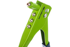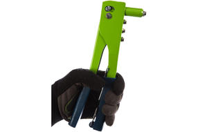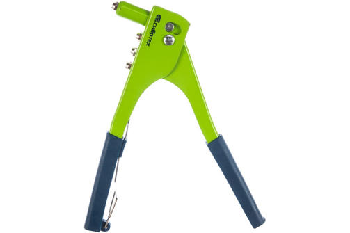 Заклепочник Сибртех 40541, 260 мм, рассчитан на скрепление листовых металлических заготовок при помощи вытяжных заклепок 2,4-3,2-4,0-4,8 мм. Он обеспечивает быстрое и прочное соединение материалов. Заклепочник предназначен для непрофессионального применения, пригодится при проведении строительных и ремонтных работ. Преимущества Высокий ресурс и прочность — корпус заклепочника выполнен из стали методом штамповки. Эргономичные рукоятки из ПВХ надежно ложатся в руку и препятствуют проскальзыванию инструмента. Небольшой вес заклепочника 608 г способствует снижению усталости при выполнении работ. В комплекте с заклепочником идут насадки для заклепок и ключ для их замены. 783,00 ₽ / шт