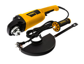 Угловая шлифовальная машина Denzel AGL230-2600 26921 мощностью 2600 Вт совместима с оснасткой диаметром 230 мм и имеет частоту вращения шпинделя 6600 об/мин. Предназначена для обработки металлических заготовок при помощи шлифовальных и отрезных кругов, а также проволочных щеток. Благодаря функции плавного пуска машина включается без рывка и перегрузки электросети. Эффективная система пылезащиты продлевает срок службы инструмента. Углошлифовальная машина оптимальна для выполнения бытовых работ. Преимущества Безопасная работа — специальный кожух с бесключевой регулировкой защищает пользователя от осколков, искр и случайного контакта с диском. Защита от случайного включения — перед запуском машины необходимо нажать на клавишу блокировки, такое решение предотвращает травмирование. Комфорт во время длительной работы — благодаря фиксатору не нужно удерживать кнопку пуска нажатой. Быстрая подготовка к работе — функция блокировки шпинделя упрощает установку и замену оснастки, специальный ключ входит в комплект поставки. Удобный хват — боковую рукоятку можно установить сверху, справа или слева для наиболее комфортной работы. Эргономичность — задняя рукоятка сделана поворотной, резиновый кабель длиной 3 м позволяет свободно перемещаться по рабочей зоне. Простое обслуживание — в конструкции предусмотрен легкий доступ к щеточному узлу, запасные угольные щетки входят в комплект поставки. 8 299,00 ₽ / шт