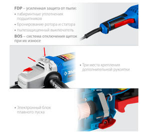 Самая мощная модель в семействе ЗУБР и одна из самых мощных на рынке Система плавного пуска позволяет раскручивать мощный двигатель без рывка и пусковой перегрузки HQM - повышенная стойкость двигателя к перегрузкам за счет более плотной укладки обмоток FDP - полная защита основных узлов от пыли: - ротор с капроновым бандажом и дополнительным слоем защитного лака, - статор со специальным покрытием обмотки, - пылезащищенный выключатель с ультразвуковой сваркой, - лабиринтное уплотнение всех шариковых подшипников создает непроницаемый для пыли воздушный барьер Возможность поворота основной рукоятки вокруг своей оси - это естественный хват при любой ориентации инструмента Поворотная с шагом 90° голова позволяет настроить изделие под левую руку или для резки Защитный кожух диска с простой фиксацией без инструмента DP - фланцы из разного материала предотвращают чрезмерное затягивание диска при работе Профессиональный уровень производства валов с механической обработкой после закалки предотвращает их деформацию Широкий эргономичный выключатель с пылезащитой, блокировкой непреднамеренного включения, а также фиксацией во включенном положении BOS - специальная конструкция щеткодержателя, предотвращающая повреждение коллектора при полном износе щеток Быстрый доступ к щеткам для замены Надежный хват благодаря основной и дополнительной рукояткам с мягкими накладками Три места крепления дополнительной рукоятки для удобного хвата при любой работе Кабель питания с увеличенной длиной 3м в резиновой изоляции 16 700,00 ₽ / шт