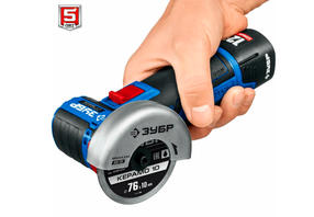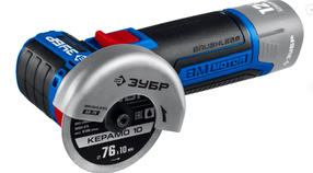ЗУБР 12 В, d76 мм, 2 АКБ тип Т7 (2 А·ч), бесщеточная УШМ, сумка, Профессионал (AB-76-22)