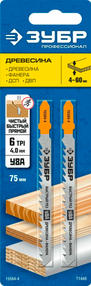 ЗУБР T144D, T-хвост.,У8А сталь,по дереву,шаг зуба 4мм(6TPI),раб.длина75мм,2шт,(15584-4)цена за шт