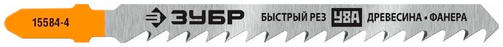 ЗУБР T144D, полотна для эл/лобзика, У8А сталь, по дереву, фанере и ДСП, Т-хвост, шаг зуба 4мм (6TPI), раб. длина 75мм, 2шт, Профессионал, (15584-4_z02) Модель - 15584-4_z02 Технические характеристики: -Материал обработки: дерево, фанера, ДСП -Материал полотна: Углеродистая сталь -Тип хвостовика: Т-образный, EU - хвостовик -Тип реза: Прямой быстрый рез Полотна ЗУБР "эксперт" для электролобзиков имеют увеличенную толщину рабочей части, что даёт повышенную устойчивость к излому и перегибу. Применяются на электрических лобзиках при резке массива древесины, многослойной фанеры и ДСП. Преимущества: Изготовлены на полностью автоматизированных производственных линиях с применением новейших методов шлифовки, разводки и заточки зубьев. 110,00 ₽ / шт