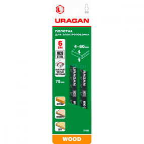 URAGAN T244D, T-хвост., фигурный резHCS, шаг 4 мм, 75 мм, 2 шт, полотна для лобзика (159477-4)