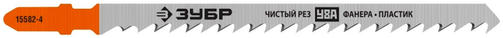 ЗУБР T301CD, полотна для эл/лобзика, У8А сталь, по дереву, фанере и ДСП, Т-хвост, шаг зуба 4мм (6TPI), раб. длина 100мм, 2шт, Профессионал, (15582-4_z02) Модель - 15582-4_z02 Технические характеристики: -Материал обработки: дерево, фанера, ДСП -Материал полотна: Углеродистая сталь -Тип хвостовика: Т-образный, EU - хвостовик -Тип реза: Быстрый рез Полотна ЗУБР "эксперт" для электролобзиков имеют увеличенную толщину рабочей части, что даёт повышенную устойчивость к излому и перегибу. Применяются на электрических лобзиках при резке массива древесины, многослойной фанеры и ДСП. Преимущества: Изготовлены на полностью автоматизированных производственных линиях с применением новейших методов шлифовки, разводки и заточки зубьев. 154,00 ₽ / шт