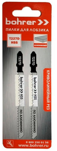 Пилки для лобзиков Bohrer по алюм. T227D HSS 100/75мм,шаг 3мм (криволин. рез)(2шт.в уп.) цена за шт.