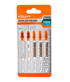 5250310 Пилки для лобзика T101D 5 шт, прям.чис рез, 10-45мм мяг.древ.. ДСП. пласт Sturm! цена за шт