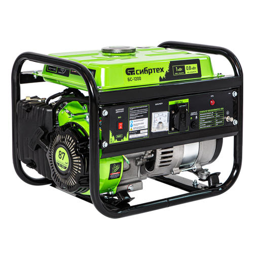 Генератор бензиновый БС-1200, 1 кВт, 230В, четырехтактный, 5,5 л, ручной стартер Сибртех 94541
