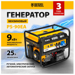 Генератор бензиновый PS 90 EA, 9.0кВт, 230В, 25л, коннектор автоматики, электростартер Denzel 946934
