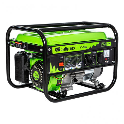 Генератор бензиновый БС-2500, 2,2 кВт, 230В, 4-х такт.,5,5л , ручной стартер// Сибртех 94542