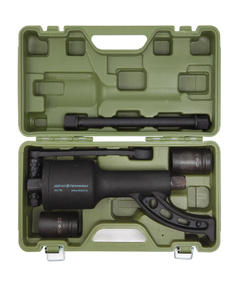 Усиленный ручной механический гайковёрт c передаточным числом 1:64 и моментом силы 5800 Н•м. Ручной гайковёрт (также называемый «мясорубка») применяется в работе с крепежом, требующим большого механического усиления крутящего момента. Механический гайковёрт не предназначен для закручивания свай Принцип действия и устройство гайковёрта Гайковёрт работает по принципу планетарного редуктора, в состав которого входят несколько взаимосвязанных планетарных передач, преобразующих и передающих крутящий момент. Кольцевая шестерня каждой передачи является солнечной шестерней последующей передачи, тем самым достигается многократное увеличение крутящего момента. Передаточное отношения зависит от количества планетарных передач и количества зубьев каждого отдельного компонента. Инструкция по эксплуатации гайковёрта Технические характеристики: Размер присоединительного квадрата 1" Передаточное число 1:64 Максимальный момент силы 5800 Н•м Головки в комплекте 32 мм, 33 мм Длина гайковёрта 340 мм Длина удлинителя 300 мм Вес комплекта в кейсе 10 кг Твердость шестерней 42-46 HRC 8 100,00 ₽ / шт