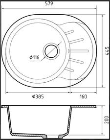 Мойка мрамор RONDO GF-R-580L чаша с крылом 580*450 мм графит GRANFEST