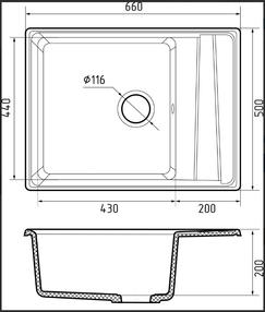 GRANFEST Мойка мрамор LEVEL GF-LV-660L чаш+крр 660*500 серый