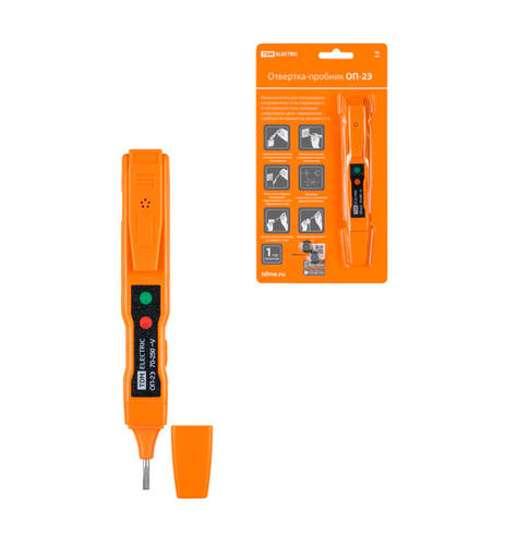 Отвертка-пробник TDM ОП-2Э SQ0501-0001 предназначена для тестирования напряжения в сетях переменного и постоянного тока, проверки целостности цепи, определения полярности элементов питания и т.д. Позволяет измерять напряжение в сетях контактным и бесконтактным способами. Отличается крепким пластиковым корпусом, прочным стальным стержнем и наличием звуковой индикации в дополнение к световой. Имеет возможность проверки электронных компонентов (конденсаторов, диодов и т. п.). С помощью отвертки–пробника можно определить: фазный и нулевой проводник; наличие переменного напряжения, в том числе в скрытой проводке; место обрыва кабеля; целостность цепи («0»-0 ÷ 5, «L»-0 ÷ 50, «H»-0 ÷ 100 МОм); полярность батареи или аккумулятора 1.5-36 В. Также индицирует высокочастотные электромагнитные поля «L» - 5, «H» - 2 мВт/см2. 480,00 ₽ / шт