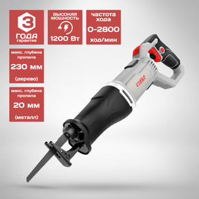 Ставр ПС-1200Р Пила сабельная 1200Вт, 0-2800ход/мин, ход 29мм. поворотная рукоятка, кабель 3м