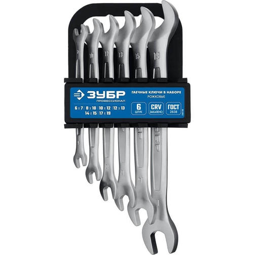 ЗУБР 6 шт, 6 - 19 мм, набор рожковых гаечных ключей, Профессионал (27011-H6)