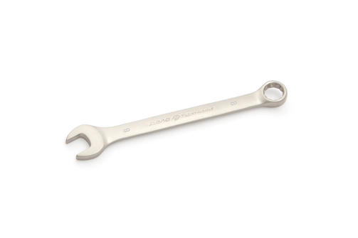 Классический вариант комбинированного гаечного ключа с рожковым профилем на одной стороне и двенадцатигранным накидным профилем на другой. Комбинированный ключ является самым распространенным вариантом гаечного ключа т.к. совмещает в себе возможности рожкового и накидного профилей. Накидной профиль отведён от продольной оси тела ключа на 15° это позволяет работать в ограниченном пространстве. Точность изготовления 12-гранного накидного профиля сводит к минимуму вероятность слизывания граней крепежа. Угол наклона рожковой части относительно продольной оси тела ключа - 15°, что позволяет довести минимальный угловой шаг при работе в труднодоступных местах до 30°. 150,00 ₽ / шт