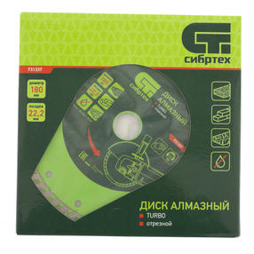 Диск алмазный, отрезной Turbo, 180 х 22.2 мм, сухая резка Сибртех 731337